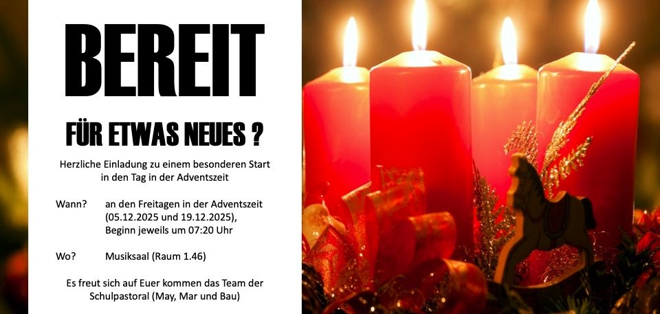 22.11.2025Fachbereiche katholische und evangelische Religon Adventsandachten am Reichswald-Gymnasium22.11.2025Herzliche Einladung!Mehr lesen