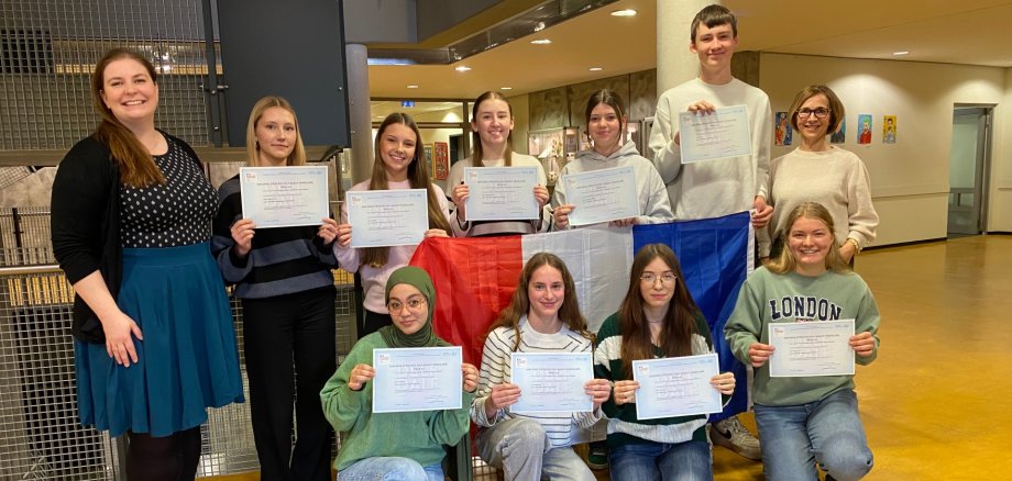 Herzlichen Glückwunsch allen Schülerinnen und Schülern, die ein Zertifikat erhalten haben: Luna Agne, Sara Al-Shami, Lilli Bauer, Lilly Engelbrecht, Ileas Frei, Leana Günter, Loki Stapelfeldt, Helene Stidtgen und Emma-Leni Walther