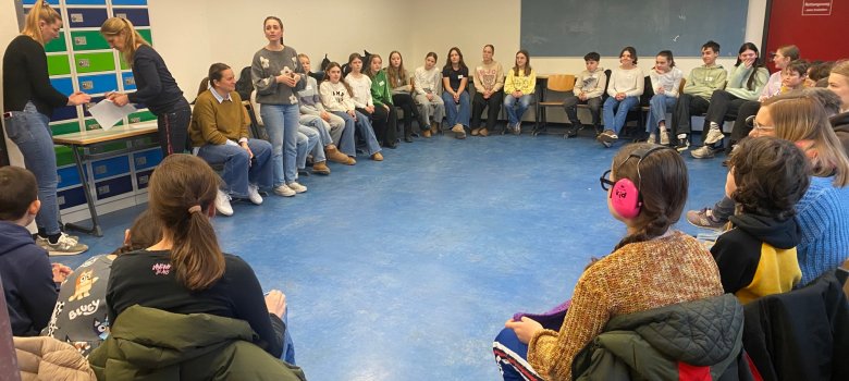 Nach einer längeren Pause hat sich am vergangenen Donnerstag die "Miteinander-AG" des Reichswald-Gymnasiums getroffen. Schülerinnen und Schüler der sechsten bis elften Klasse freuten sich, Schüler von der Förderschule der Reha-Westpfalz in Ramstein begrüßen zu dürfen. Es war ein erstes Kennenlernen, dem viele weitere Treffen folgen werden. Einem gemeinsamen Frühstück folgten Führungen durch die Räume der Schule und einige beliebte Spiele. Sofort wurden erste neue Bekanntschaften geknüpft, manche Telefonnummer ausgetauscht. Ein erstes Aufeinandertreffen also, bei dem man sofort bemerkt hat, wie gut sich die Teilnehmer auf Anhieb verstanden. Die Koordination und Planung hatten Ivana Theisinger, Katrin Franz, Lena Paulus und Martin Hauter übernommen. Als nächstes ist ein Gegenbesuch der Ramsteiner Schüler in Landstuhl geplant, es wird dann gemeinsam Fastnacht gefeiert.