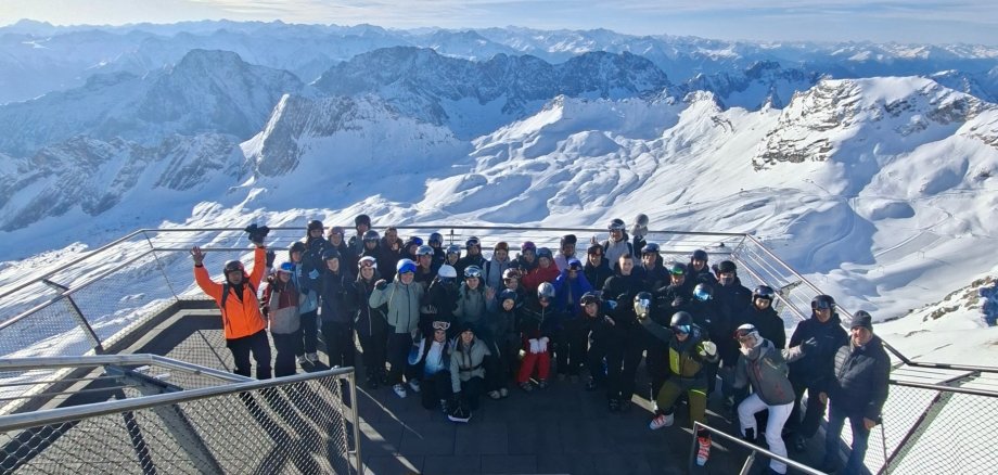 Auch in diesem Jahr hatten wieder 40 Schülerinnen und Schüler der MSS 11 des Reichswald-Gymnasiums die Möglichkeit, in Garmisch-Partenkirchen Ski zu fahren. Der Skischullandheimaufenthalt fand vom 18. bis 23. Januar 2026 statt. Die ersten drei Skitage wurden im Skigebiet um Garmisch-Partenkirchen bei strahlendem Sonnenschein unter der fachmännischen Anleitung der begleitenden Lehrkräfte, Frau Benkel, Herr Nunberger, Herr Schäffler und Herr Zimmermann, mit dem Erlernen oder Optimieren des Skifahrens verbracht. Am vierten Skitag stand als besonderes Highlight die Zugspitze auf dem Programm. Nach einer beeindruckenden Gondelfahrt vom Eibsee aus folgten die Besichtigung der Zuspitze und das Erkunden des dazugehörigen Skigebiets. Wenngleich der Anteil an Neulernenden erstmals sehr hoch war, konnte am Ende der Woche dank der hohen Motivation aller Teilnehmenden jeder der Anwesenden souverän und sicher die Pisten der Zugspitze meistern. Eine Besonderheit stellte dabei außerdem die Fahrt mit der Zahnradbahn zurück nach Garmisch dar. Aber auch das Abendprogramm gestaltete sich abwechslungsreich – hervorzuheben sind vor allem die Nachtwanderung oder das gemeinsame Grillen von Marshmallows und Stockbrot am Lagerfeuer. Sowohl die Schülerinnen und Schüler als auch betreuenden Lehrkräfte ziehen ein positives Fazit: „Gerne jederzeit wieder – es war toll!“