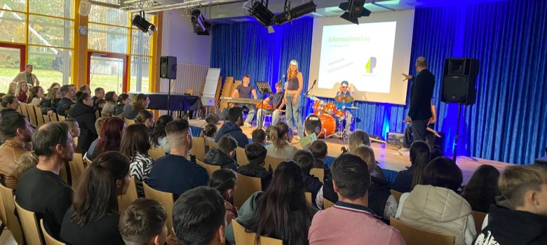 Auch in diesem Jahr öffnete das Ramsteiner Reichswald-Gymnasium seine Türen für alle Interessierten, besonders für die Eltern der jetzigen Viert- und kommenden Fünftklässer. Es präsentierten sich die verschiedenen Fachbereiche der Schule - die Naturwissenschaften, die Sprachen, die gesellschaftswissenschaftlichen Fächer und der Fachbereich Sport. Schulleiterin Dr. Sonja Tophofen, Orientierungsstufenleiter Dirk Janes und die Kollegen aus den verschiedenen Fachschaften informierten über Anmeldeformalitäten wie über das vielfältige Bildungsangebot der Schule. Für das musikalische Begleitprogramm sorgte die Schulband, um die Verpflegung kümmerten sich Schüler der Oberstufe und der Schulelternbeirat. Das Informationsangebot wurde sehr rege genutzt, das Gymnasium freute sich über eine große Zahl an Gästen.